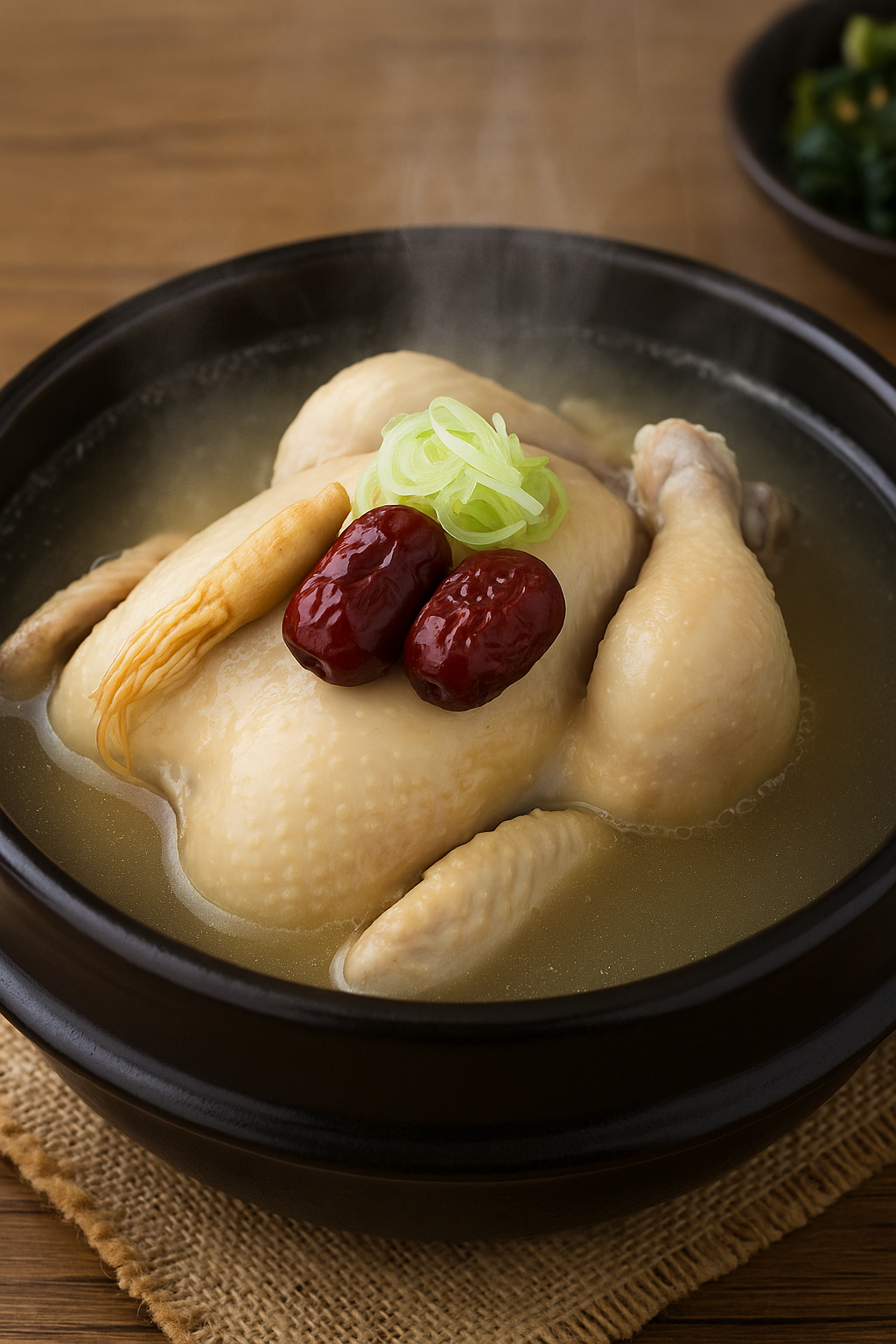 인삼의 사포닌 성분과 함께 소화가 잘되어 체력 회복에 효과적이며 특히 뜨거운 음식을 먹어 체온을 높여 땀을 배출시키는 이열치열의 원리로 더위를 이겨내는 지혜가 담겨 있습니다.