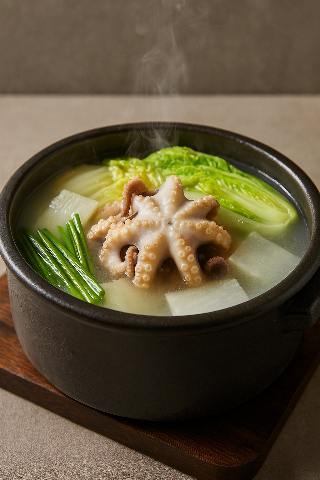 쓰러진 소도 살린다고 하는 낙지. 낙지연포탕은 낙지의 쫄깃한 식감과 풍부한 타우린,단백질이 간 기능 강화와 피로 회복에 뛰어난 효과를 보이는 대표적인 해산물 보양식입니다.